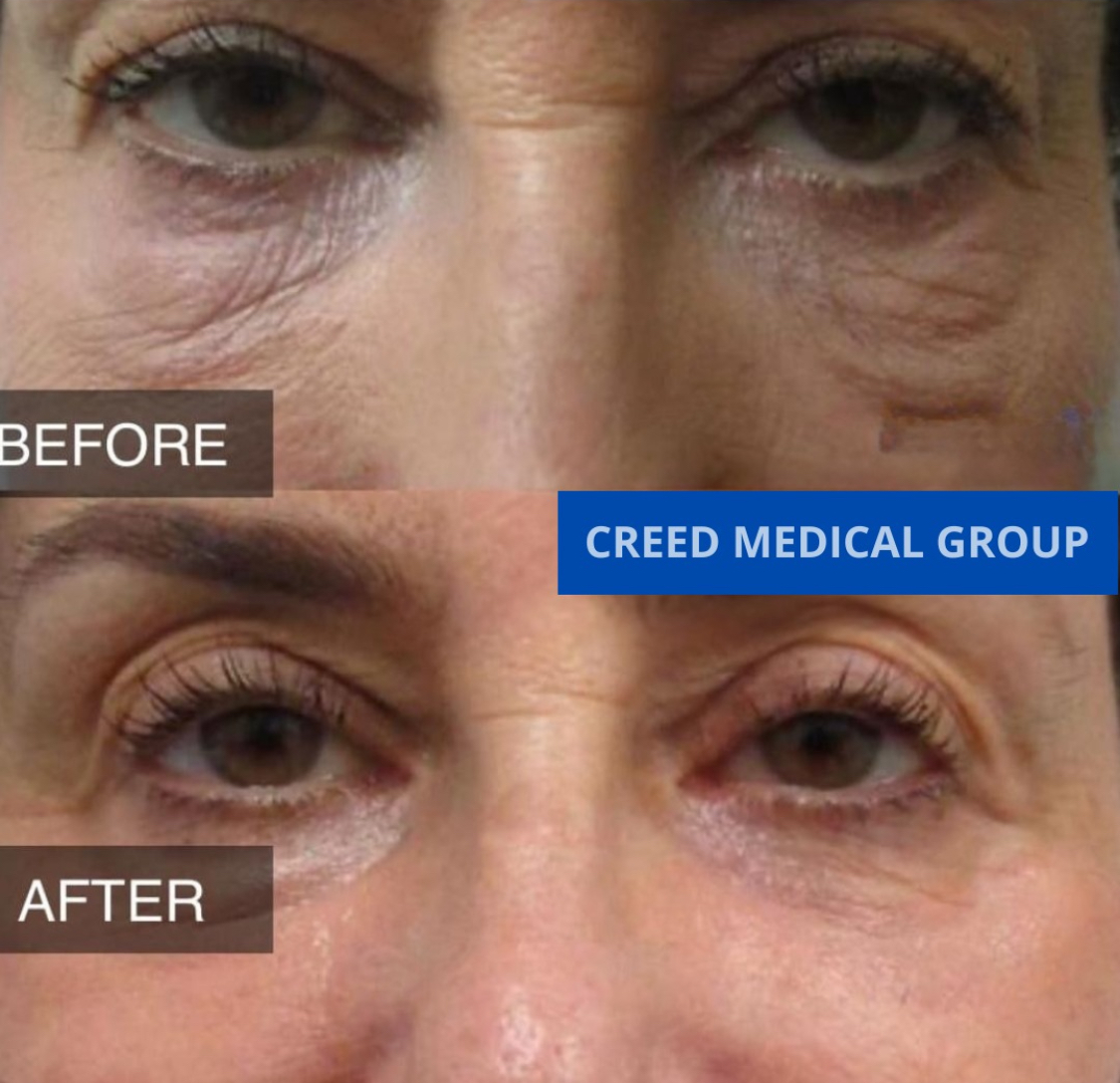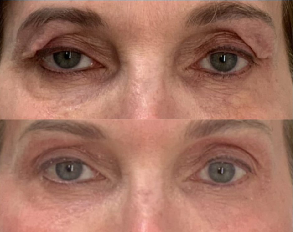 Over the following weeks, the treated area continues to improve as collagen production increases, resulting in firmer, more youthful-looking skin. The skin contracts, leading to noticeable lifting and tightening of the eyelids and surrounding area.